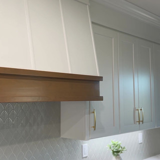 Stand-Out Features: The addition of custom island paneling and custom moulding upgrade makes this RTA kitchen swoon-worthy. Not to mention that gorgeous custom hood!